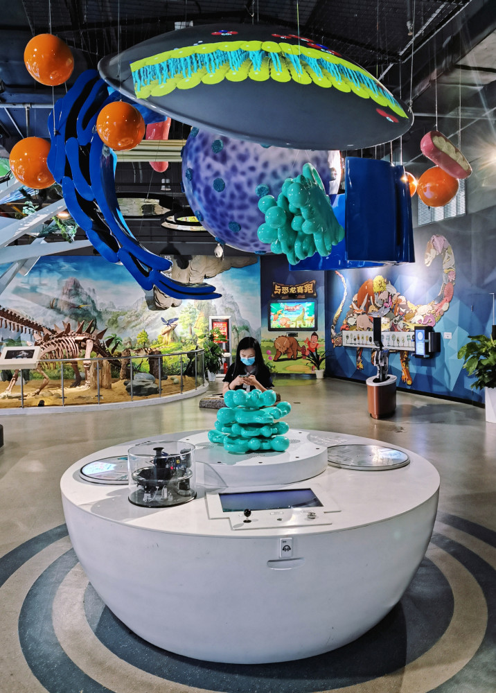 往日书本上晦涩难懂的细菌或细胞,在这里以实物模样展示,配以现代光影技术,完整具体的展示在游客面前,想不学会都难。