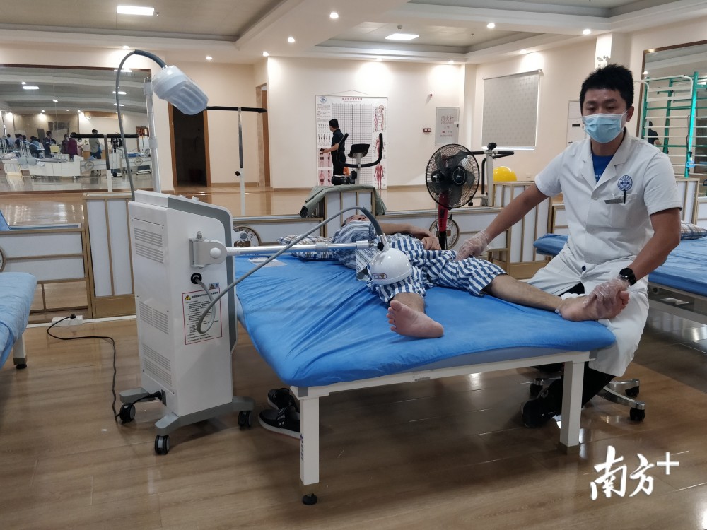 “现在我负责8个病人,有2个是在养老的,6个是住院的。”21日下午,在江门市新会区的颐逸养老中心理疗室,康复治疗师洪谷增正在为一位老人做中风后的恢复治疗。