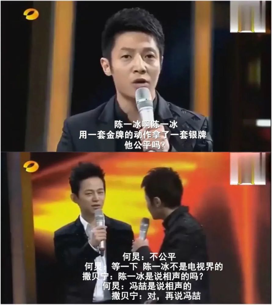 何老师秒懂接过话头,在后边的双簧中不动声色地提醒:不公平,不过陈一冰不是电视圈的,冯喆是说相声的。