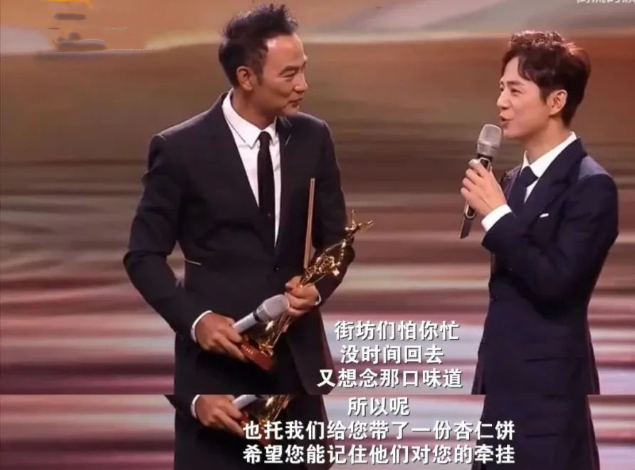就说最近的第三十届,节目安排给视帝任达华送了一盘杏仁饼。本意是澳门的街坊们用特色杏仁饼,慰藉视帝的相思之情。