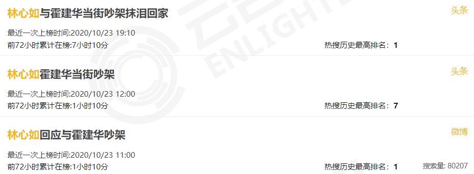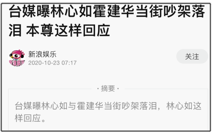 视频最后,霍建华也没来接她,只好打的士回去,内容到这里就结束了。很快闹上了微博热搜,也算动静不小,第二天林心如出来回应说两个人是在商量事情意见不合,说话声音大了点...