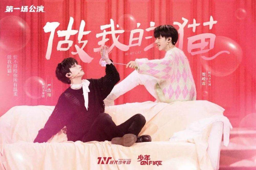 时代少年团综艺《少年ON FIRE》第一场公演,严浩翔与贺峻霖合作舞台《做我的猫》宣传海报