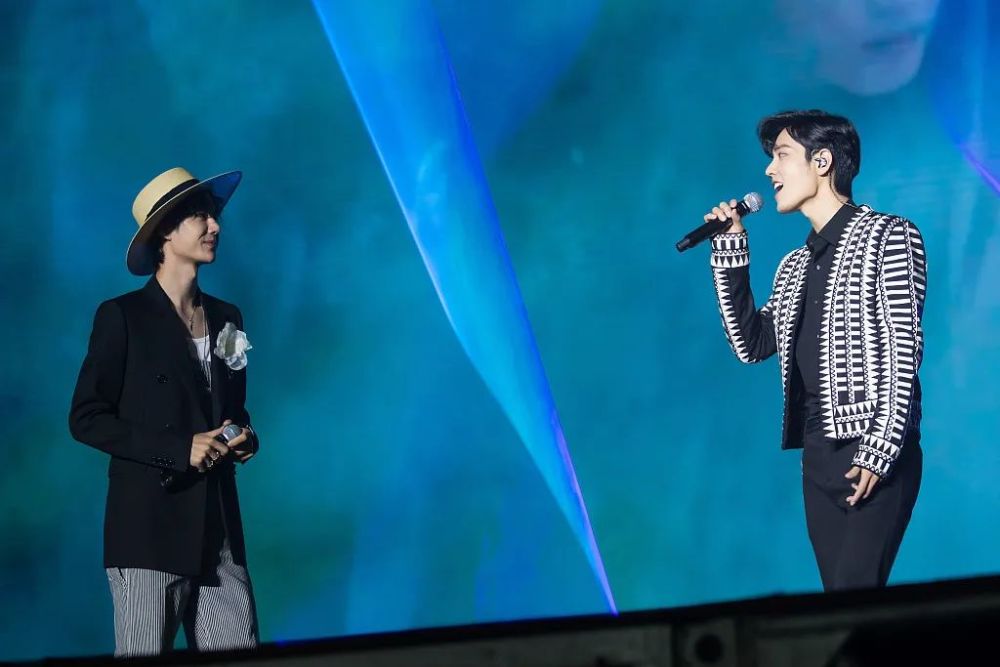 2019年11月2日,南京,陈情令国风音乐演唱会现场,主演肖战、王一博同台合唱(图源:视觉中国)