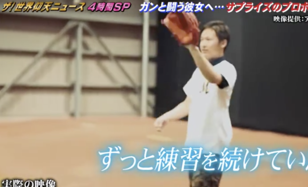 「我想向在这次开球式上与病魔作斗争的她求婚。