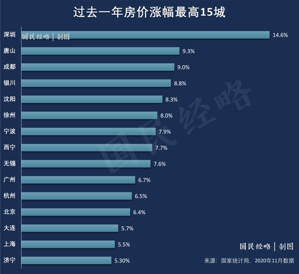 与去年同期相比,全国房价涨幅最高的城市为深圳,广州、北京、上海楼市均呈现复苏势。