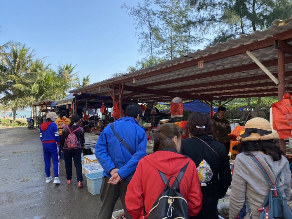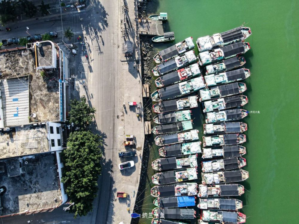 沿着潭门镇中心渔港的小路慢慢行走,只见许多渔船整齐地排着队伍,停泊在岸边,颇为壮观。如今,整个潭门镇还保留着200多艘渔船,捕捞仍是当地主业之一。空气中,随风飘来的是淡淡的海腥味。朋友介绍说,潭门港常年停有大批渔船,有的卸货,有的添加补给,有的检修。