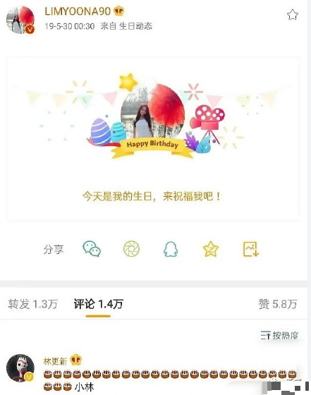 林更新真的很喜欢林允儿,每次林允儿发博林更新都会去评论,哪怕是官方推送的生日,他也会送蛋糕,这才是追星正确的姿势