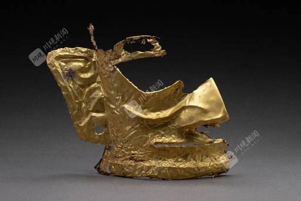 与三星堆遗址一、二号坑中出土的金面具相比,此次最新出土的金面具,显得格外厚重且与众不同。