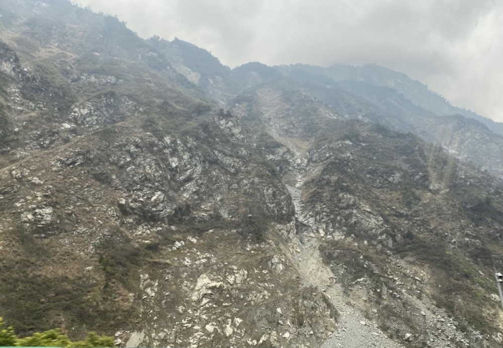 就在记者前往矿场参观的路上,也随处可见塌方与泥石流的痕迹。