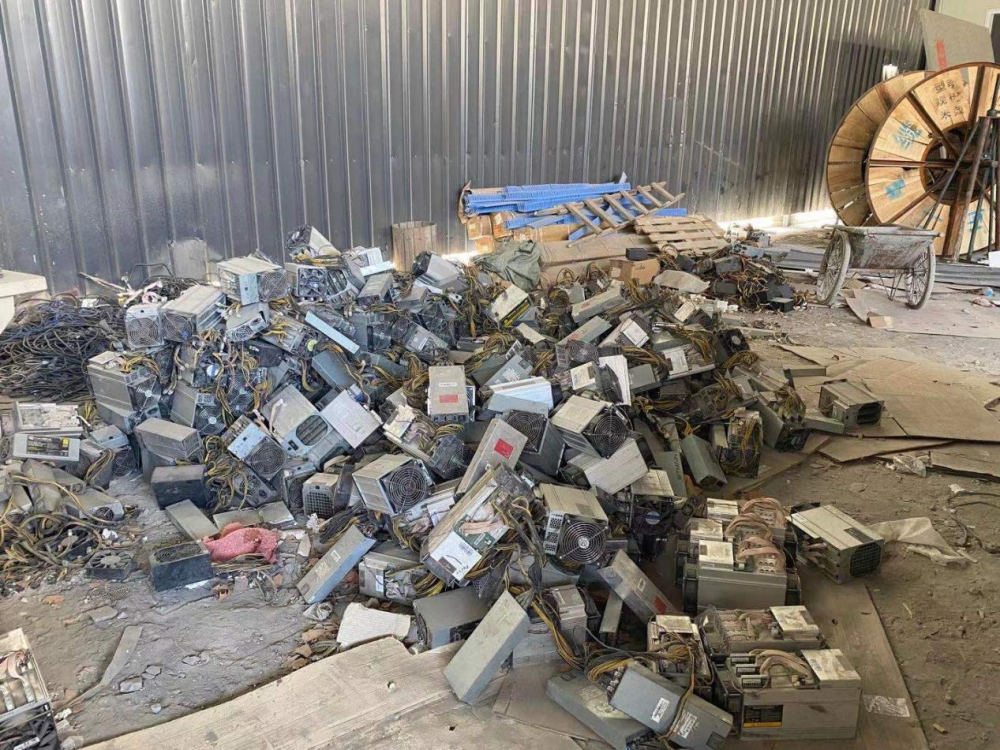 在厂房外,仍可以运行的小算力蚂蚁矿机S9随意堆放着