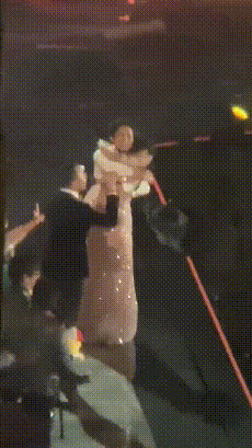 当时谢娜正和其他人拥抱,等待了一会后,谢娜一下扑到何炅的怀里。