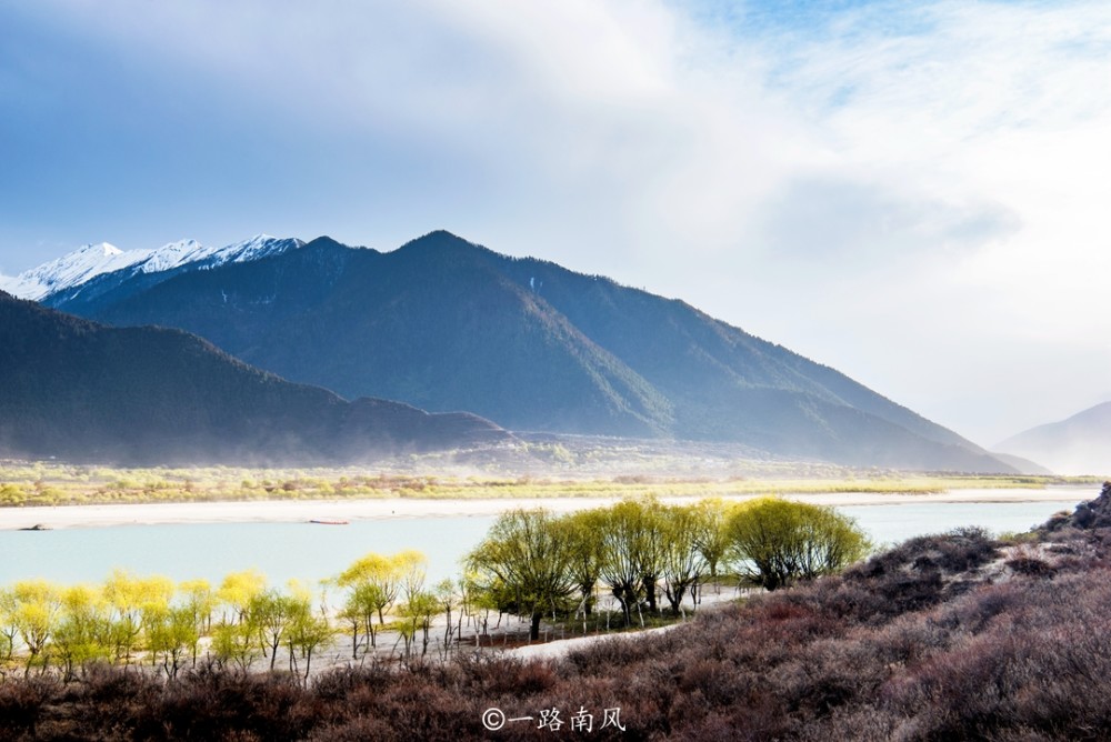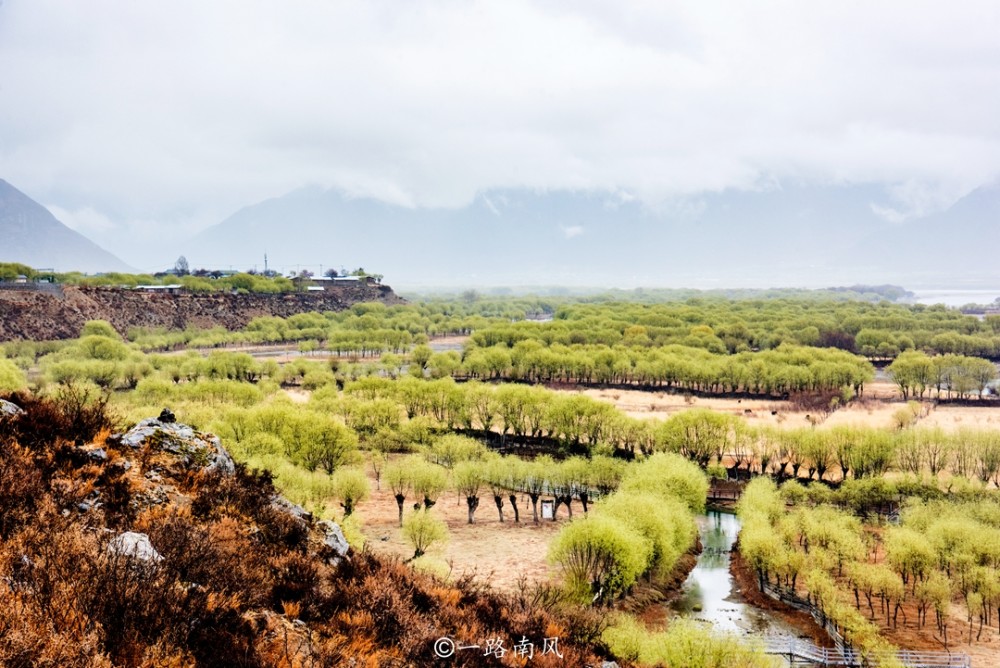 春季的尼洋河谷气候相对湿润,早上总是会下起小到中雨,这给植物的生长创造了有利条件。虽然地处世界屋脊青藏高原,环境氛围却和西藏、青海其他地方有很大的差别,有时候甚至有种身在贵州、广西或江南地区的感觉,而整个林芝地区也被亲切地称为“西藏江南”。